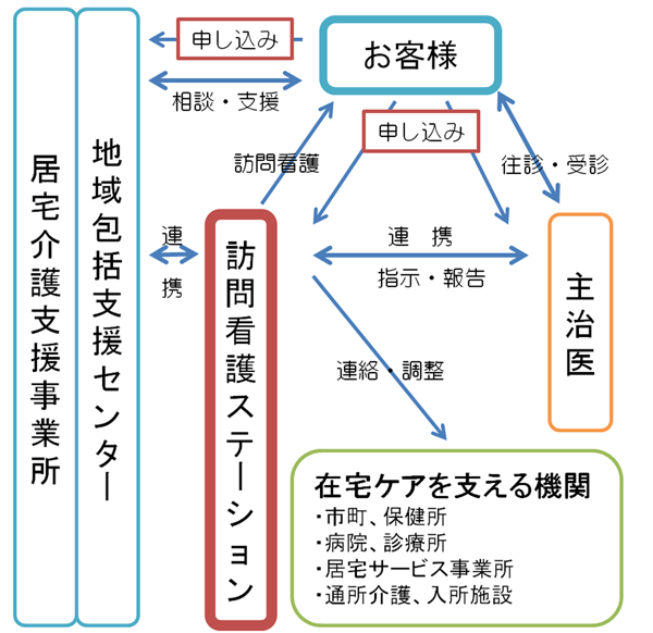 医療保険・介護保険での利用に関わらず、主治医からの「訪問看護指示書」が必要になります。